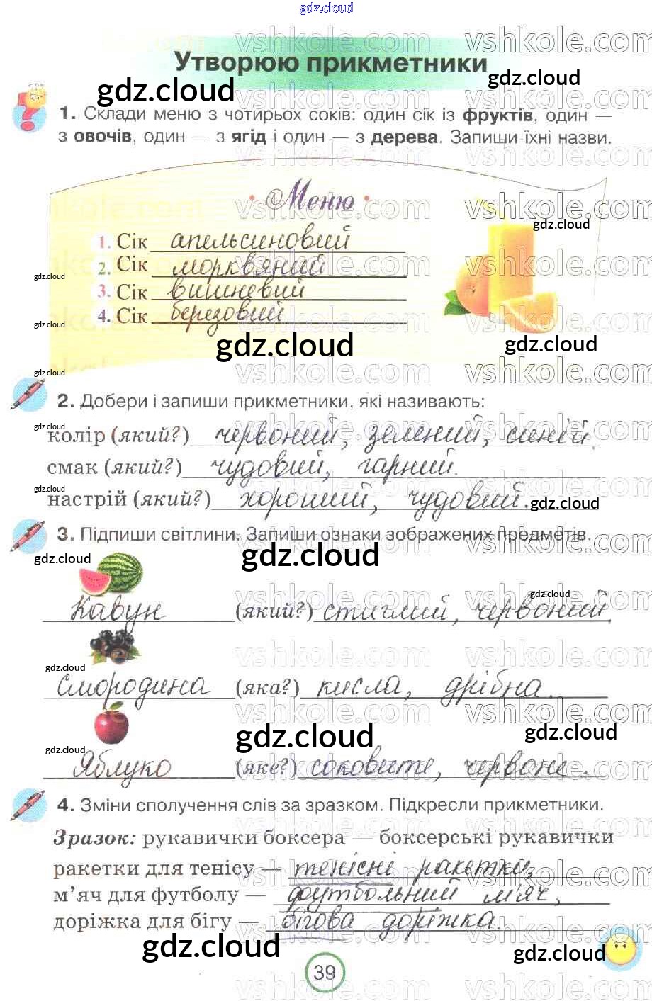 Ответ на задание 39 Рабочая тетрадь Украинский язык за 2 (второй) класс Пономарева 2019 онлайн и без номера телефона.