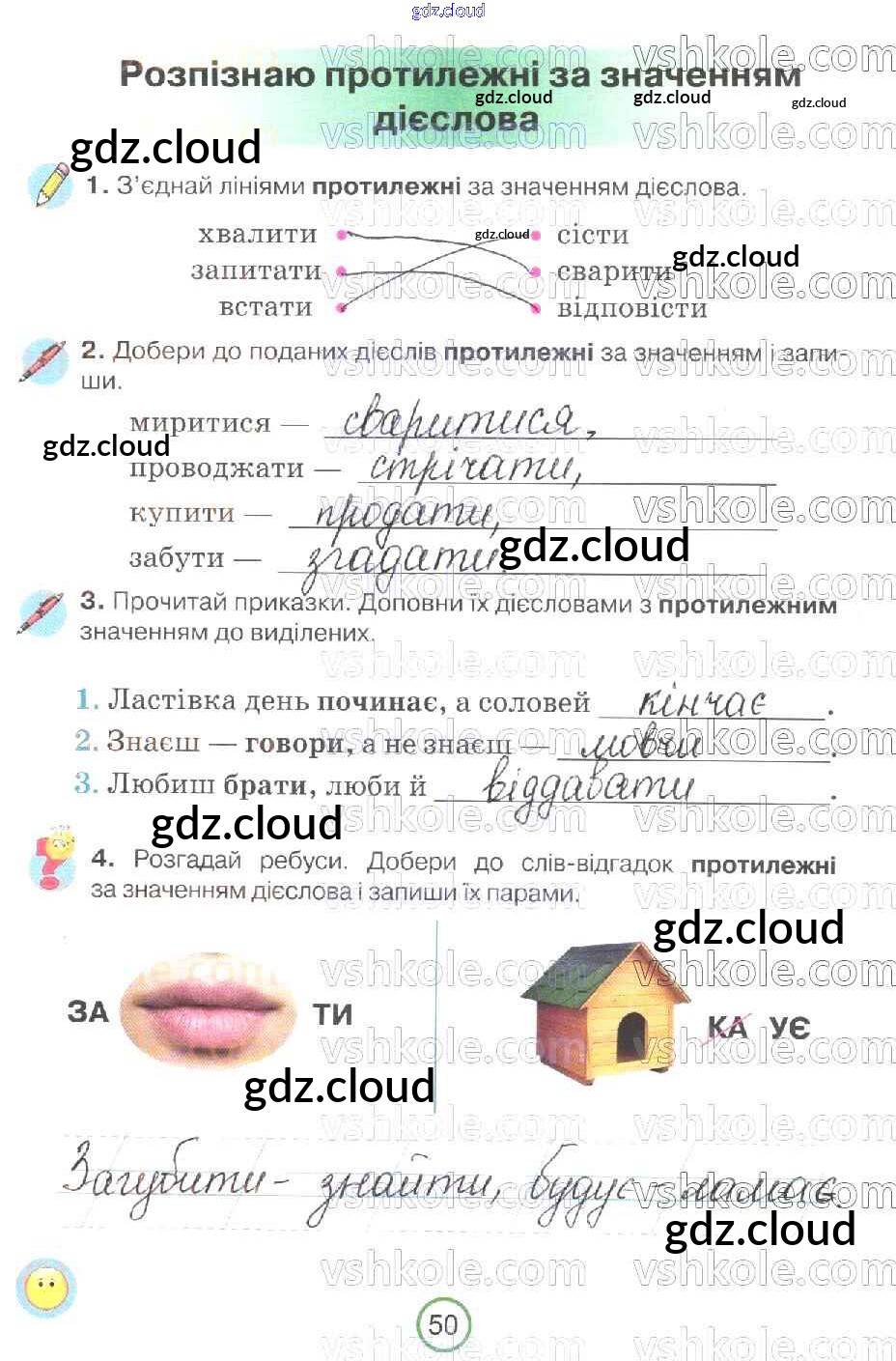 Ответ на задание 50 Рабочая тетрадь Украинский язык за 2 (второй) класс Пономарева 2019 онлайн и без номера телефона.