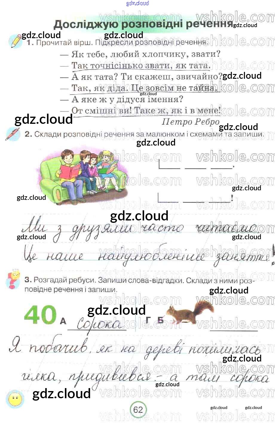 Ответ на задание 62 Рабочая тетрадь Украинский язык за 2 (второй) класс Пономарева 2019 онлайн и без номера телефона.
