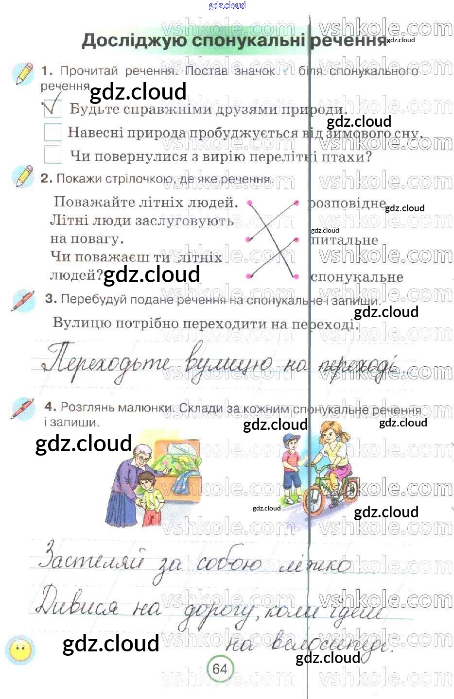 Ответ на задание 64 Рабочая тетрадь Украинский язык за 2 (второй) класс Пономарева 2019 онлайн и без номера телефона.