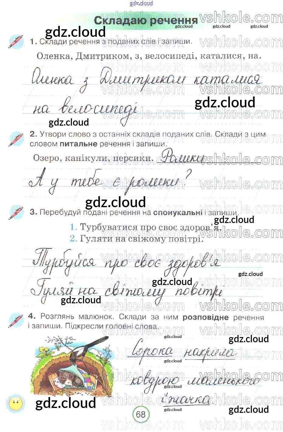 Ответ на задание 68 Рабочая тетрадь Украинский язык за 2 (второй) класс Пономарева 2019 онлайн и без номера телефона.