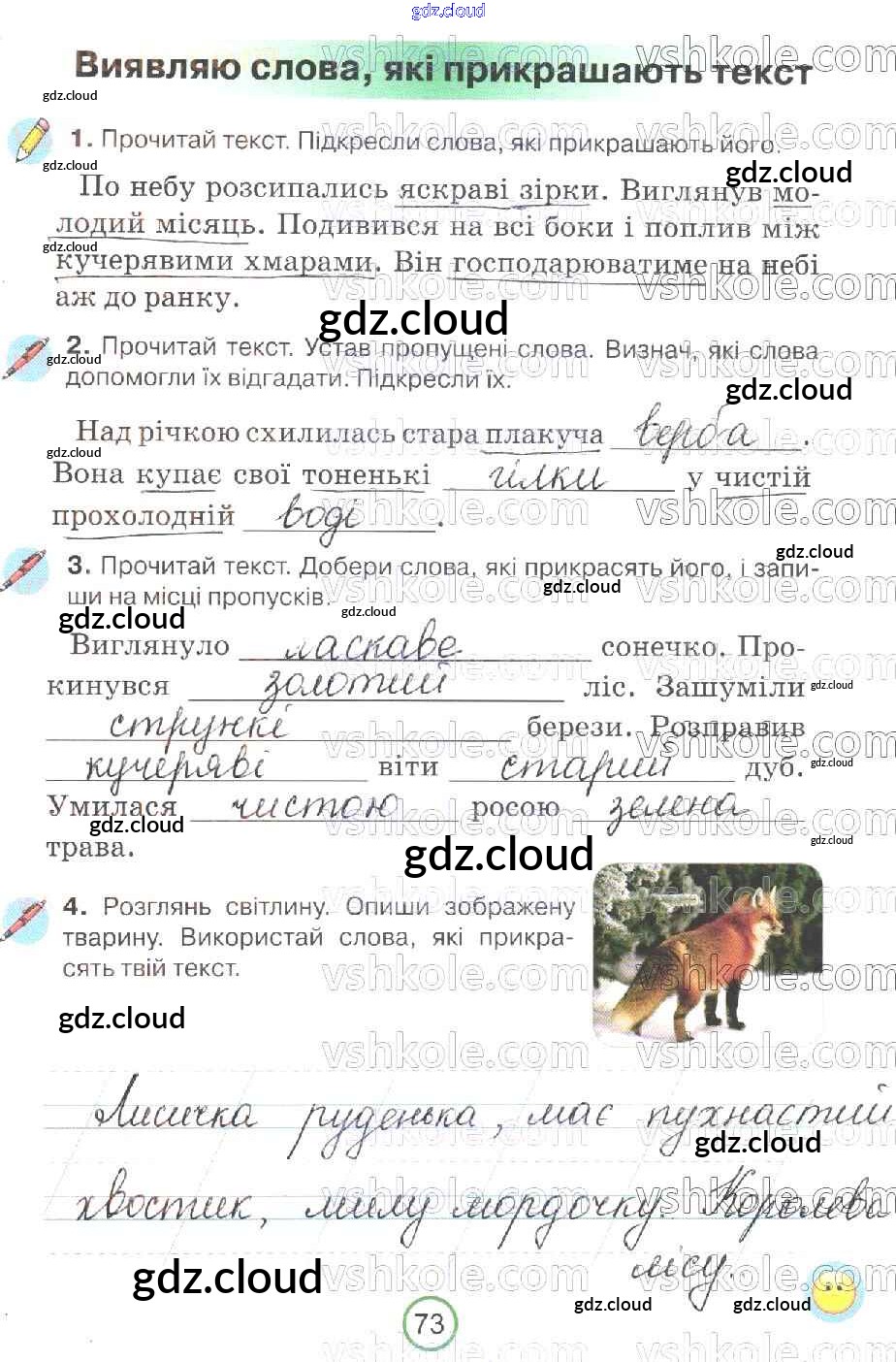 Ответ на задание 73 Рабочая тетрадь Украинский язык за 2 (второй) класс Пономарева 2019 онлайн и без номера телефона.