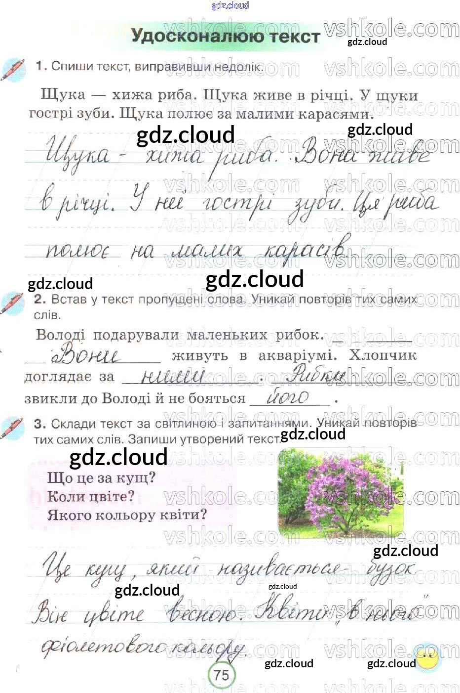 Ответ на задание 75 Рабочая тетрадь Украинский язык за 2 (второй) класс Пономарева 2019 онлайн и без номера телефона.