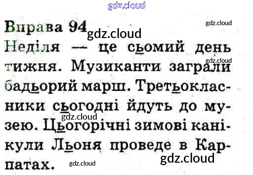 Ответ на задание 94 Учебник Украинский язык за 3 (третий) класс Гавриш, Макротенко 2014 онлайн и без номера телефона.