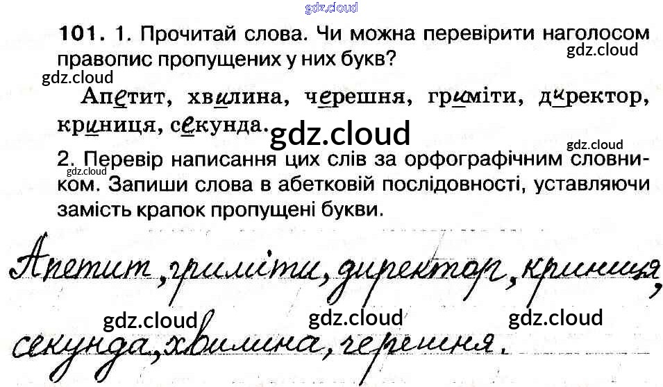Ответ на задание 101 Рабочая тетрадь Украинский язык за 3 (третий) класс Васильковская, Мельничайко 2014 онлайн и без номера телефона.