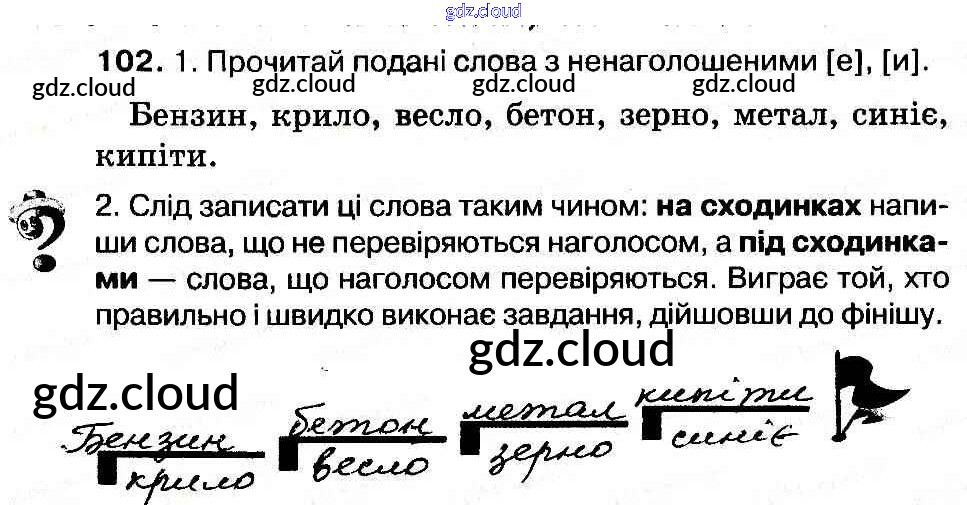 Ответ на задание 102 Рабочая тетрадь Украинский язык за 3 (третий) класс Васильковская, Мельничайко 2014 онлайн и без номера телефона.