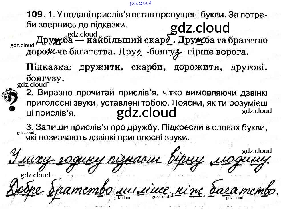 Ответ на задание 109 Рабочая тетрадь Украинский язык за 3 (третий) класс Васильковская, Мельничайко 2014 онлайн и без номера телефона.