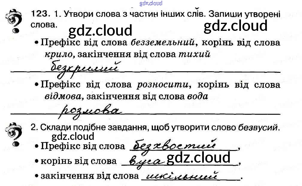 Ответ на задание 123 Рабочая тетрадь Украинский язык за 3 (третий) класс Васильковская, Мельничайко 2014 онлайн и без номера телефона.