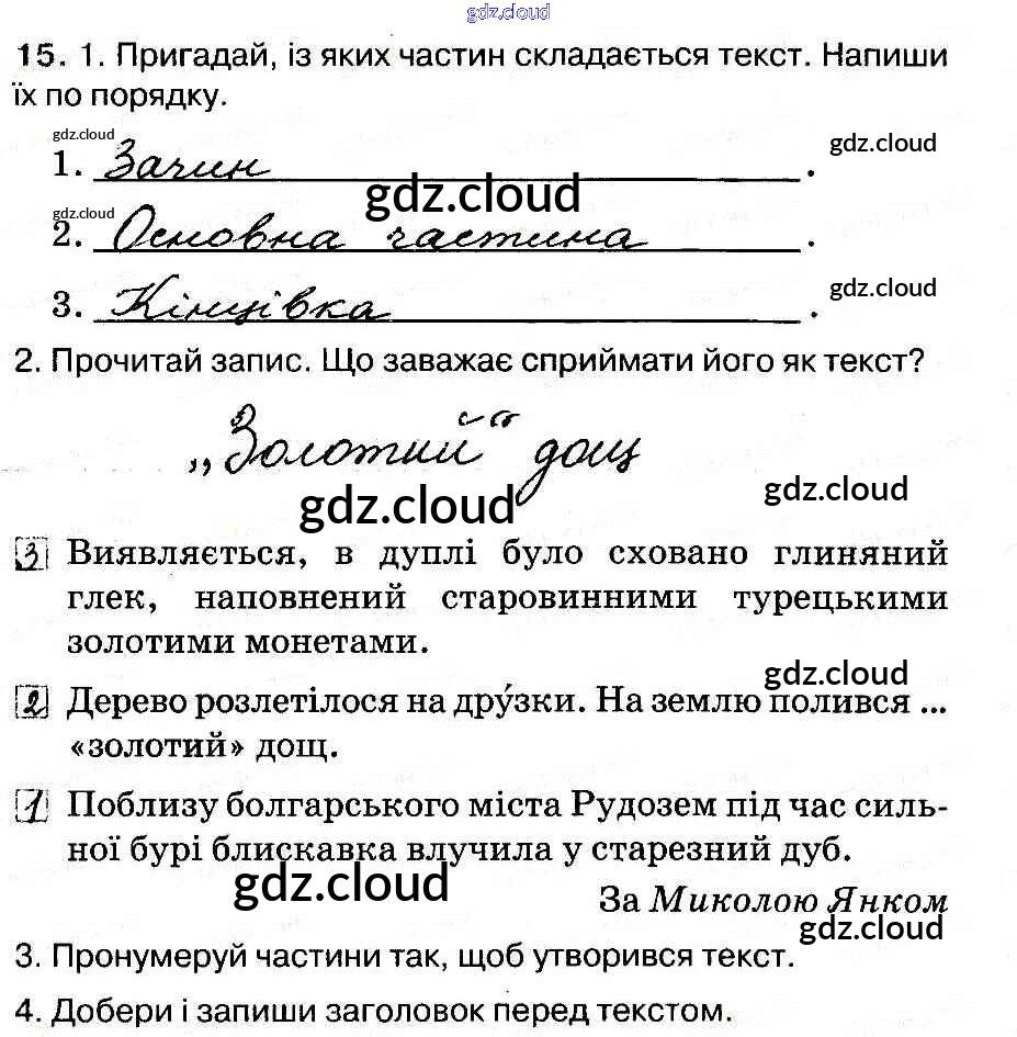Ответ на задание 15 Рабочая тетрадь Украинский язык за 3 (третий) класс Васильковская, Мельничайко 2014 онлайн и без номера телефона.
