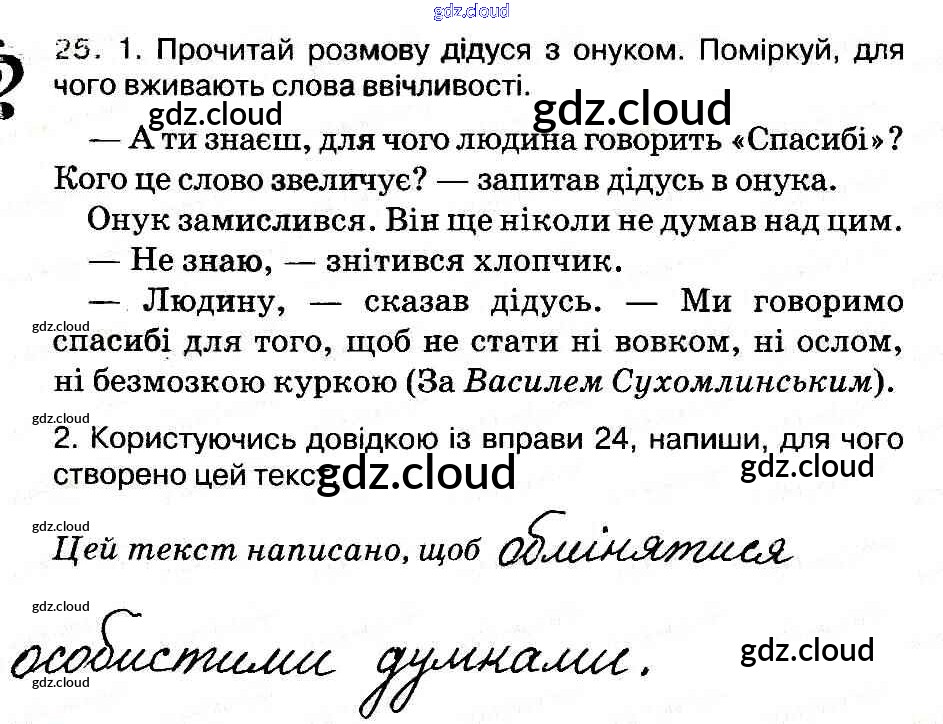Ответ на задание 25 Рабочая тетрадь Украинский язык за 3 (третий) класс Васильковская, Мельничайко 2014 онлайн и без номера телефона.