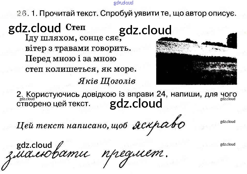 Ответ на задание 26 Рабочая тетрадь Украинский язык за 3 (третий) класс Васильковская, Мельничайко 2014 онлайн и без номера телефона.
