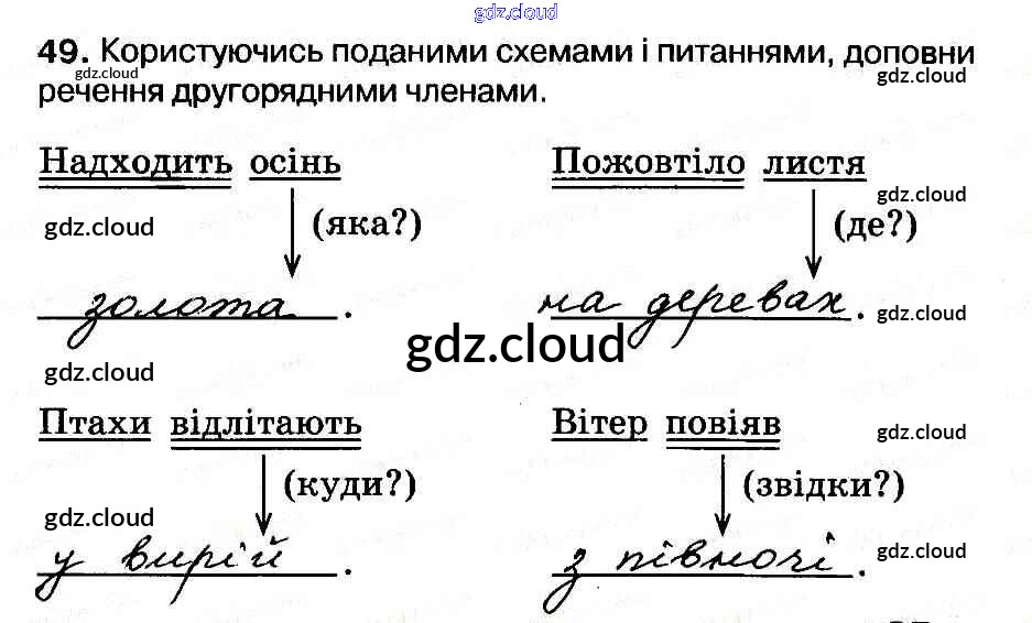 Ответ на задание 49 Рабочая тетрадь Украинский язык за 3 (третий) класс Васильковская, Мельничайко 2014 онлайн и без номера телефона.