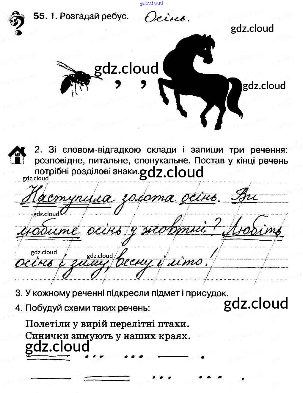 Ответ на задание 55 Рабочая тетрадь Украинский язык за 3 (третий) класс Васильковская, Мельничайко 2014 онлайн и без номера телефона.