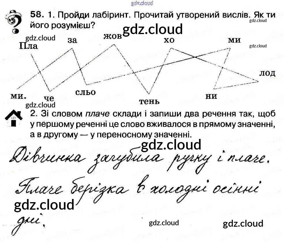 Ответ на задание 58 Рабочая тетрадь Украинский язык за 3 (третий) класс Васильковская, Мельничайко 2014 онлайн и без номера телефона.