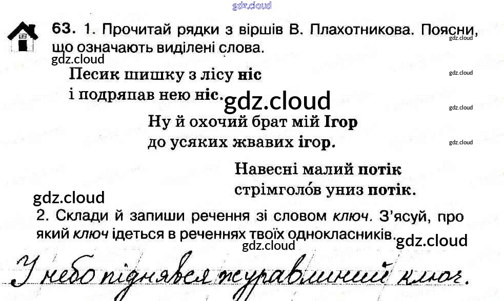 Ответ на задание 63 Рабочая тетрадь Украинский язык за 3 (третий) класс Васильковская, Мельничайко 2014 онлайн и без номера телефона.