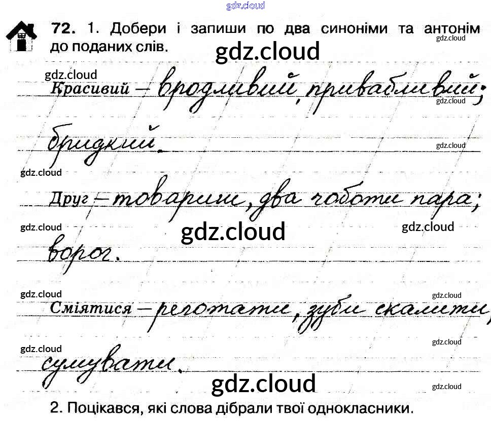 Ответ на задание 72 Рабочая тетрадь Украинский язык за 3 (третий) класс Васильковская, Мельничайко 2014 онлайн и без номера телефона.