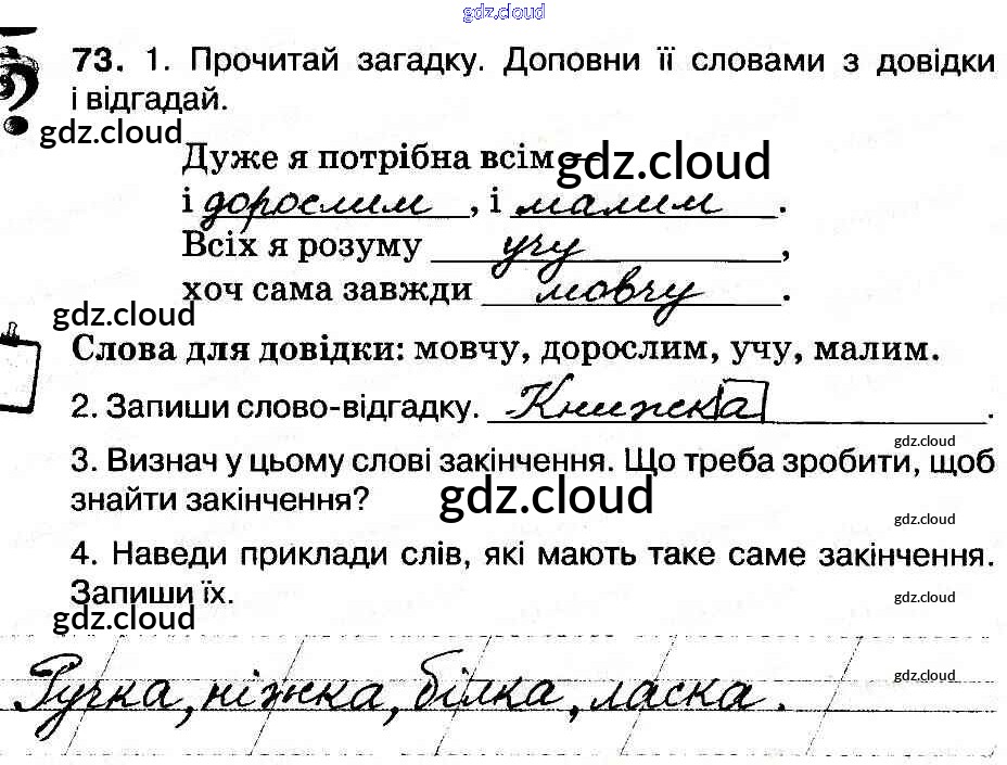 Ответ на задание 73 Рабочая тетрадь Украинский язык за 3 (третий) класс Васильковская, Мельничайко 2014 онлайн и без номера телефона.
