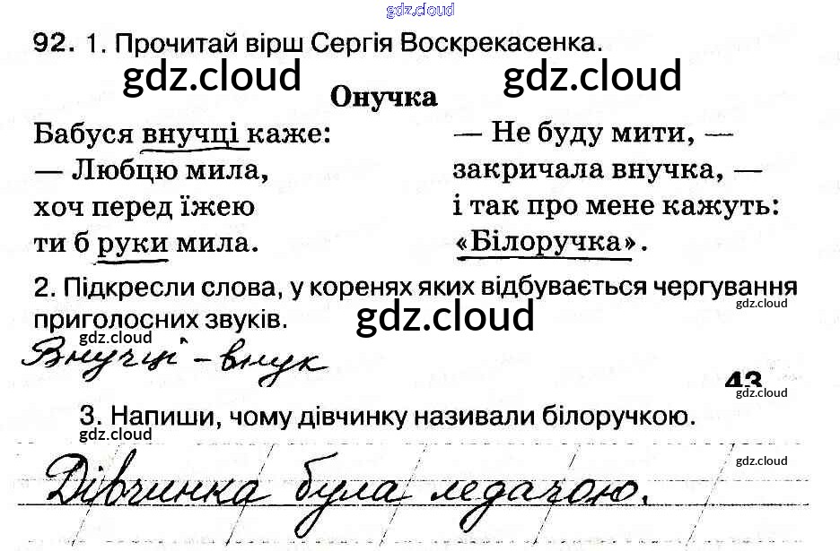 Ответ на задание 92 Рабочая тетрадь Украинский язык за 3 (третий) класс Васильковская, Мельничайко 2014 онлайн и без номера телефона.