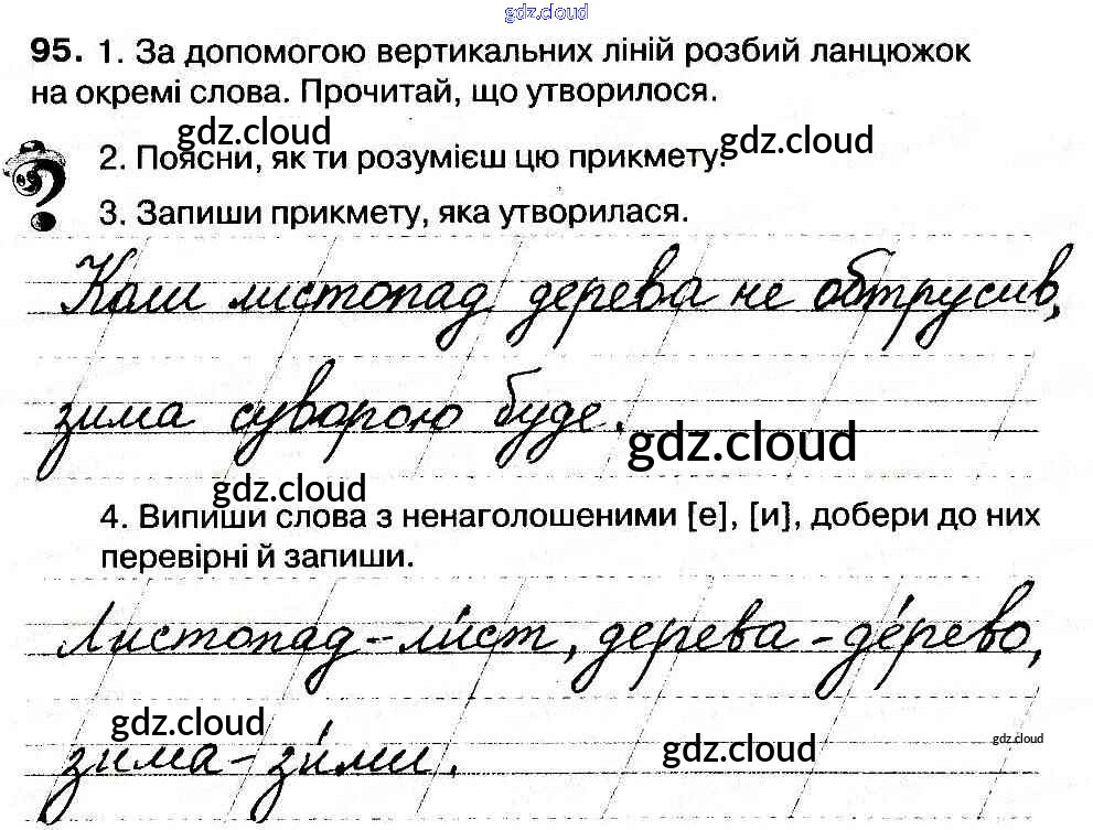 Ответ на задание 95 Рабочая тетрадь Украинский язык за 3 (третий) класс Васильковская, Мельничайко 2014 онлайн и без номера телефона.