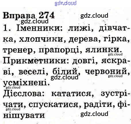 Ответ на задание 274 Учебник Украинский язык за 3 (третий) класс Вашуленко 2013 онлайн и без номера телефона.