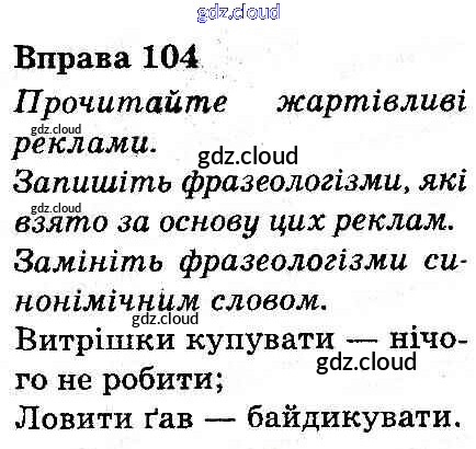 Ответ на задание 104 Учебник Украинский язык за 3 (третий) класс Захарийчук, Мовчун 2013 онлайн и без номера телефона.