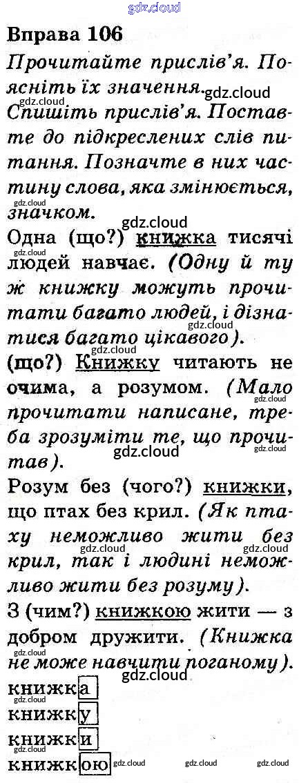 Ответ на задание 106 Учебник Украинский язык за 3 (третий) класс Захарийчук, Мовчун 2013 онлайн и без номера телефона.
