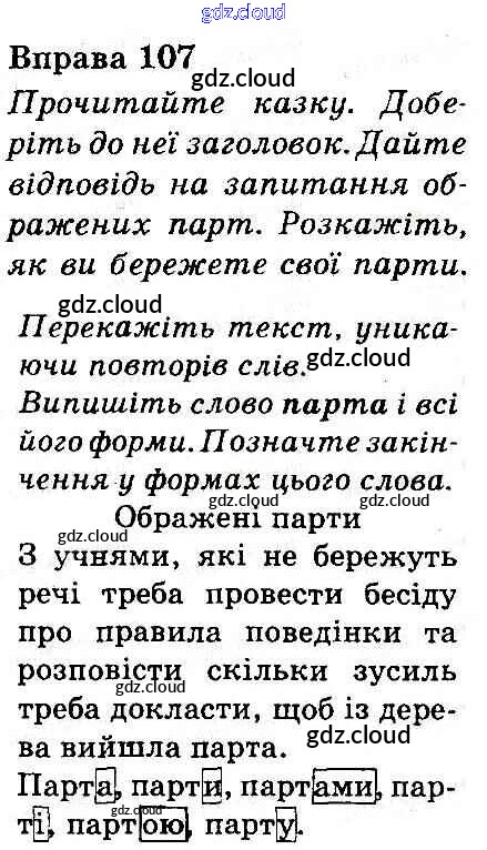 Ответ на задание 107 Учебник Украинский язык за 3 (третий) класс Захарийчук, Мовчун 2013 онлайн и без номера телефона.