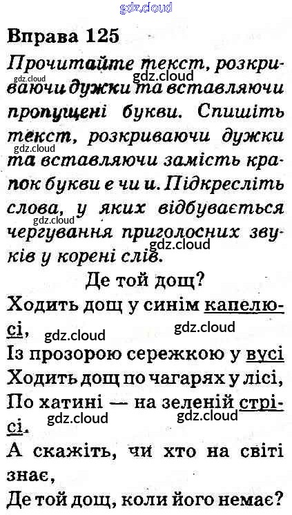 Ответ на задание 125 Учебник Украинский язык за 3 (третий) класс Захарийчук, Мовчун 2013 онлайн и без номера телефона.
