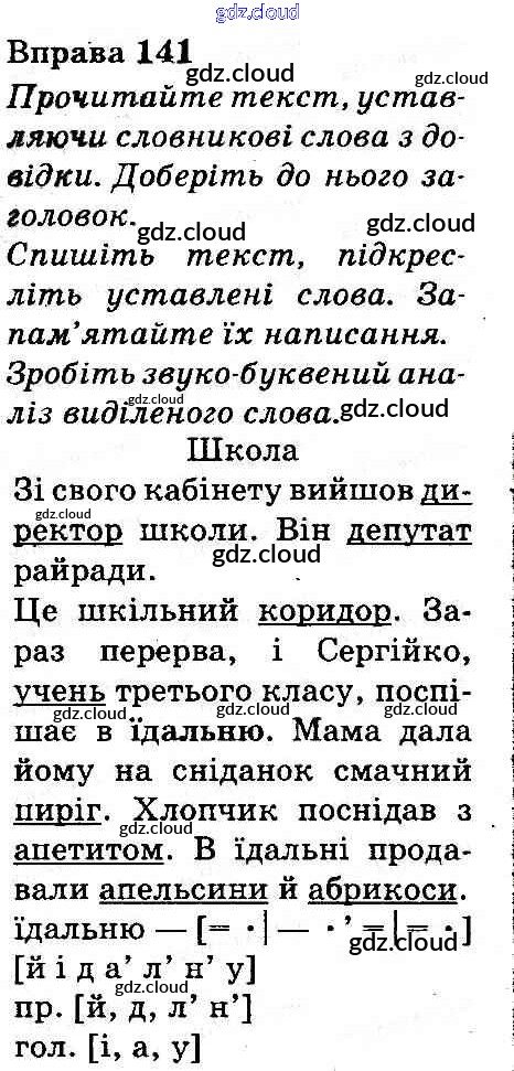 Ответ на задание 141 Учебник Украинский язык за 3 (третий) класс Захарийчук, Мовчун 2013 онлайн и без номера телефона.