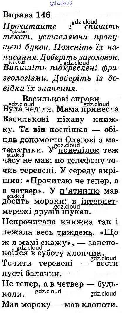 Ответ на задание 146 Учебник Украинский язык за 3 (третий) класс Захарийчук, Мовчун 2013 онлайн и без номера телефона.