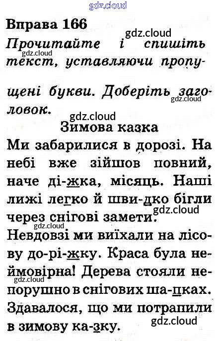Ответ на задание 166 Учебник Украинский язык за 3 (третий) класс Захарийчук, Мовчун 2013 онлайн и без номера телефона.
