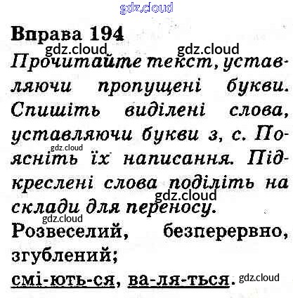 Ответ на задание 194 Учебник Украинский язык за 3 (третий) класс Захарийчук, Мовчун 2013 онлайн и без номера телефона.