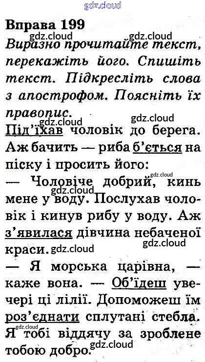 Ответ на задание 199 Учебник Украинский язык за 3 (третий) класс Захарийчук, Мовчун 2013 онлайн и без номера телефона.
