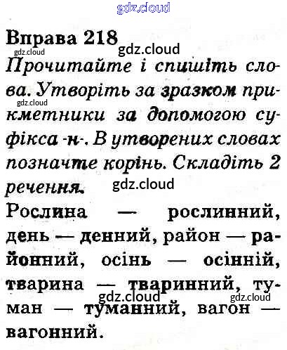Ответ на задание 218 Учебник Украинский язык за 3 (третий) класс Захарийчук, Мовчун 2013 онлайн и без номера телефона.