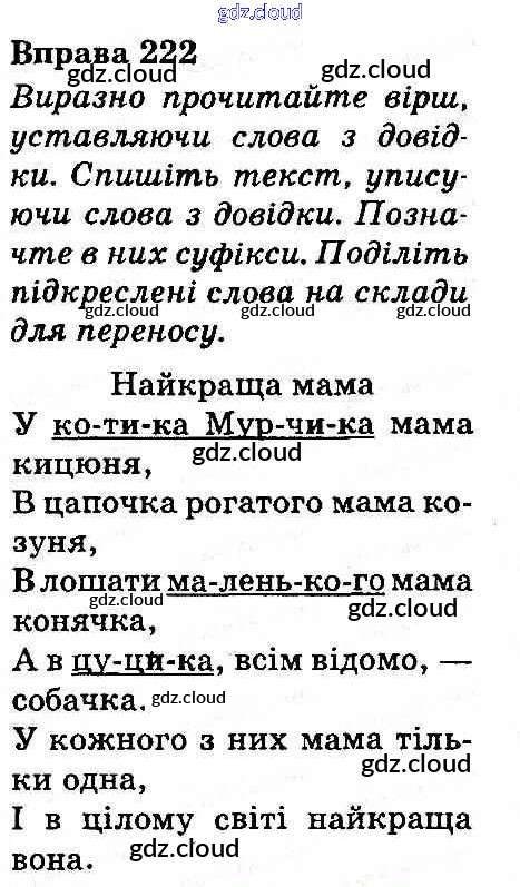 Ответ на задание 222 Учебник Украинский язык за 3 (третий) класс Захарийчук, Мовчун 2013 онлайн и без номера телефона.