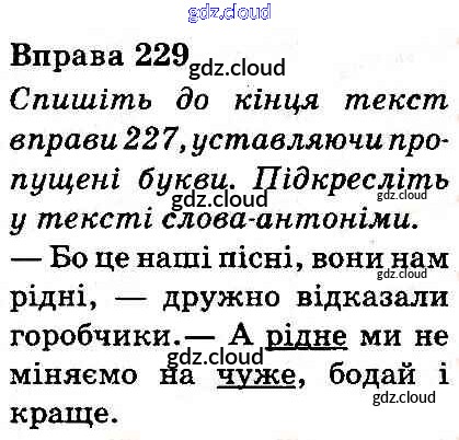 Ответ на задание 229 Учебник Украинский язык за 3 (третий) класс Захарийчук, Мовчун 2013 онлайн и без номера телефона.