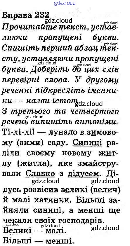 Ответ на задание 232 Учебник Украинский язык за 3 (третий) класс Захарийчук, Мовчун 2013 онлайн и без номера телефона.