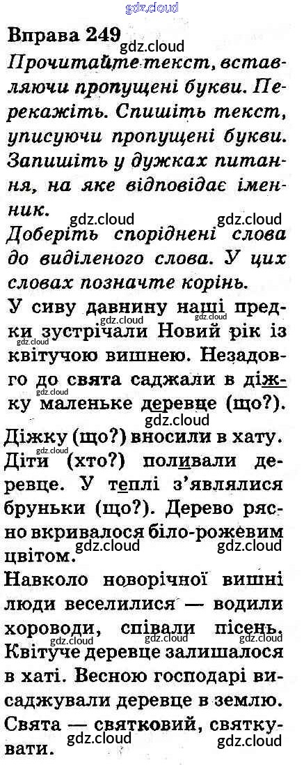 Ответ на задание 249 Учебник Украинский язык за 3 (третий) класс Захарийчук, Мовчун 2013 онлайн и без номера телефона.