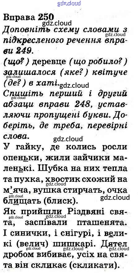 Ответ на задание 250 Учебник Украинский язык за 3 (третий) класс Захарийчук, Мовчун 2013 онлайн и без номера телефона.