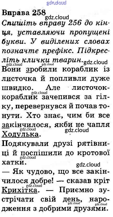 Ответ на задание 258 Учебник Украинский язык за 3 (третий) класс Захарийчук, Мовчун 2013 онлайн и без номера телефона.
