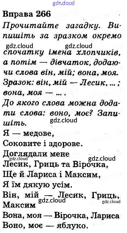 Ответ на задание 266 Учебник Украинский язык за 3 (третий) класс Захарийчук, Мовчун 2013 онлайн и без номера телефона.