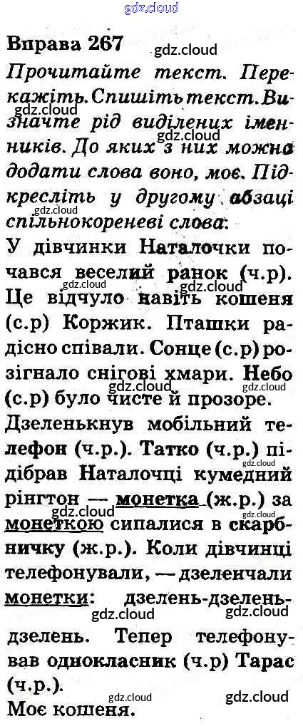 Ответ на задание 267 Учебник Украинский язык за 3 (третий) класс Захарийчук, Мовчун 2013 онлайн и без номера телефона.