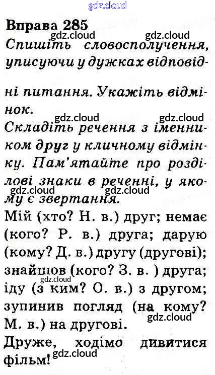 Ответ на задание 285 Учебник Украинский язык за 3 (третий) класс Захарийчук, Мовчун 2013 онлайн и без номера телефона.