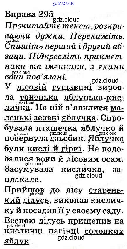 Ответ на задание 295 Учебник Украинский язык за 3 (третий) класс Захарийчук, Мовчун 2013 онлайн и без номера телефона.