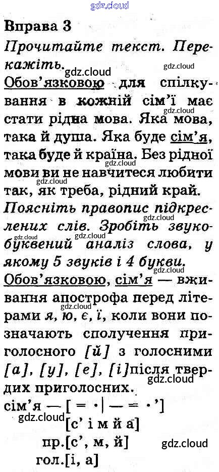 Ответ на задание 3 Учебник Украинский язык за 3 (третий) класс Захарийчук, Мовчун 2013 онлайн и без номера телефона.