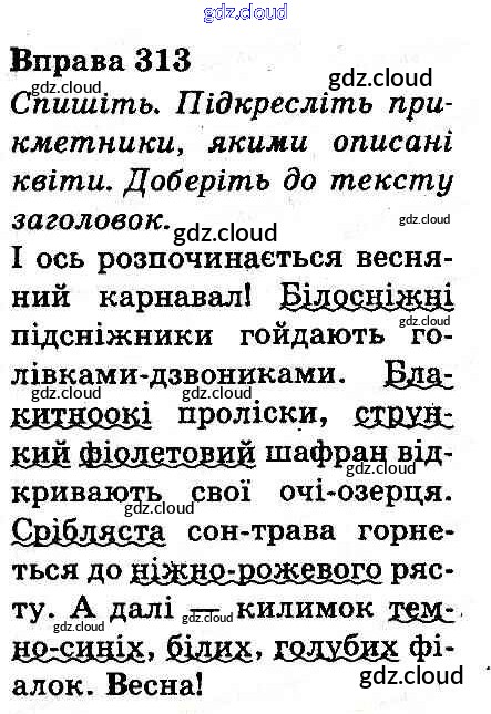 Ответ на задание 313 Учебник Украинский язык за 3 (третий) класс Захарийчук, Мовчун 2013 онлайн и без номера телефона.