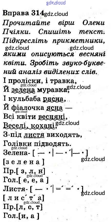 Ответ на задание 314 Учебник Украинский язык за 3 (третий) класс Захарийчук, Мовчун 2013 онлайн и без номера телефона.