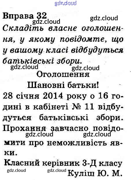 Ответ на задание 32 Учебник Украинский язык за 3 (третий) класс Захарийчук, Мовчун 2013 онлайн и без номера телефона.