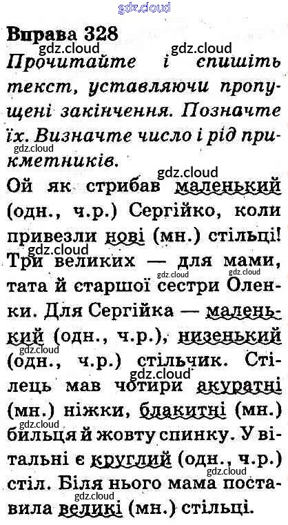 Ответ на задание 328 Учебник Украинский язык за 3 (третий) класс Захарийчук, Мовчун 2013 онлайн и без номера телефона.