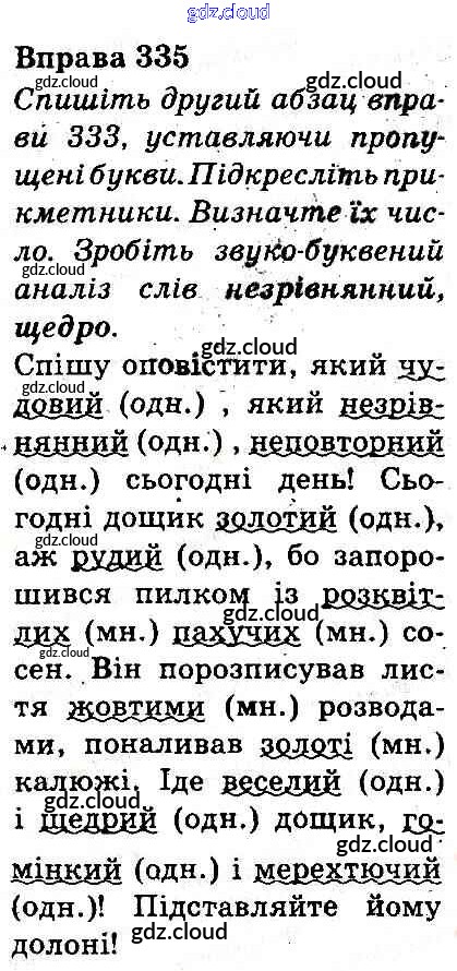 Ответ на задание 335 Учебник Украинский язык за 3 (третий) класс Захарийчук, Мовчун 2013 онлайн и без номера телефона.